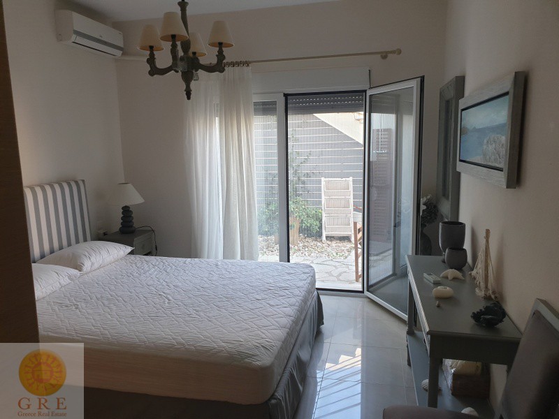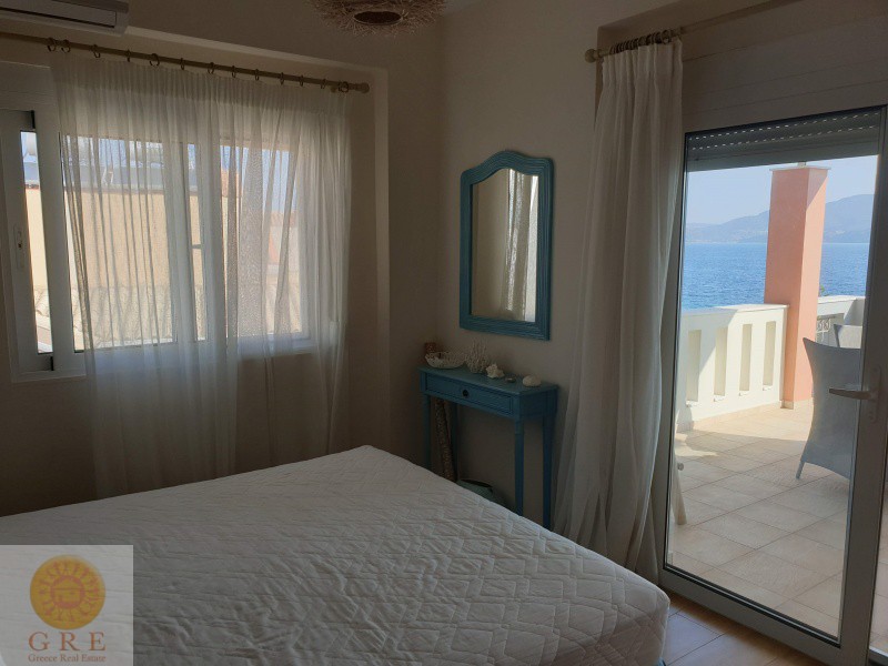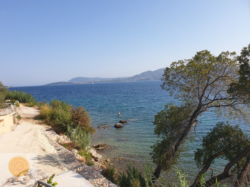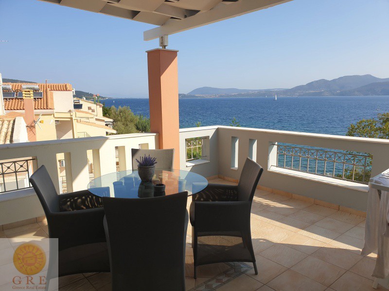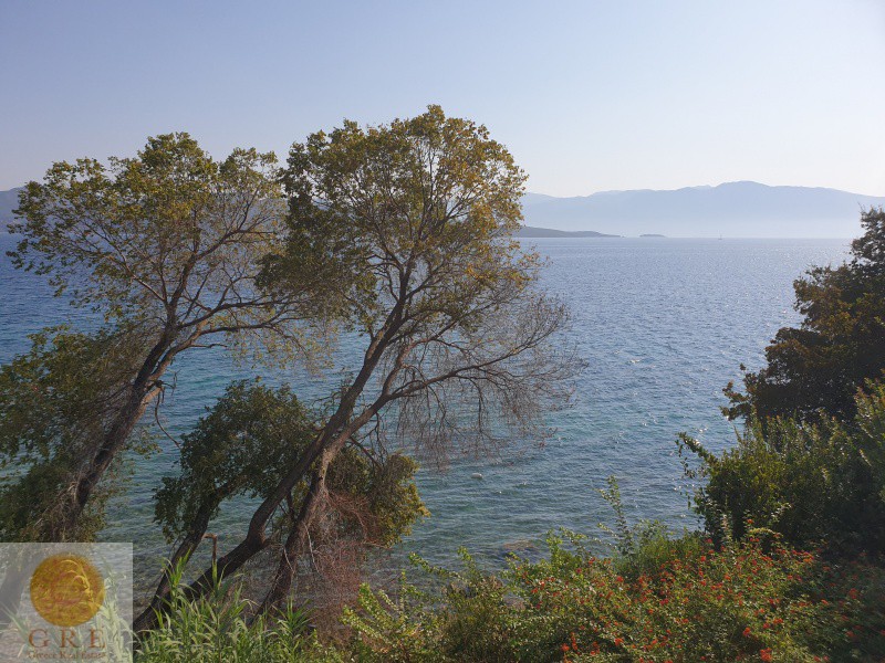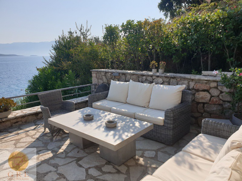 A Luxury villa for sale on the sea in Lefkada, with an adjacent beach.