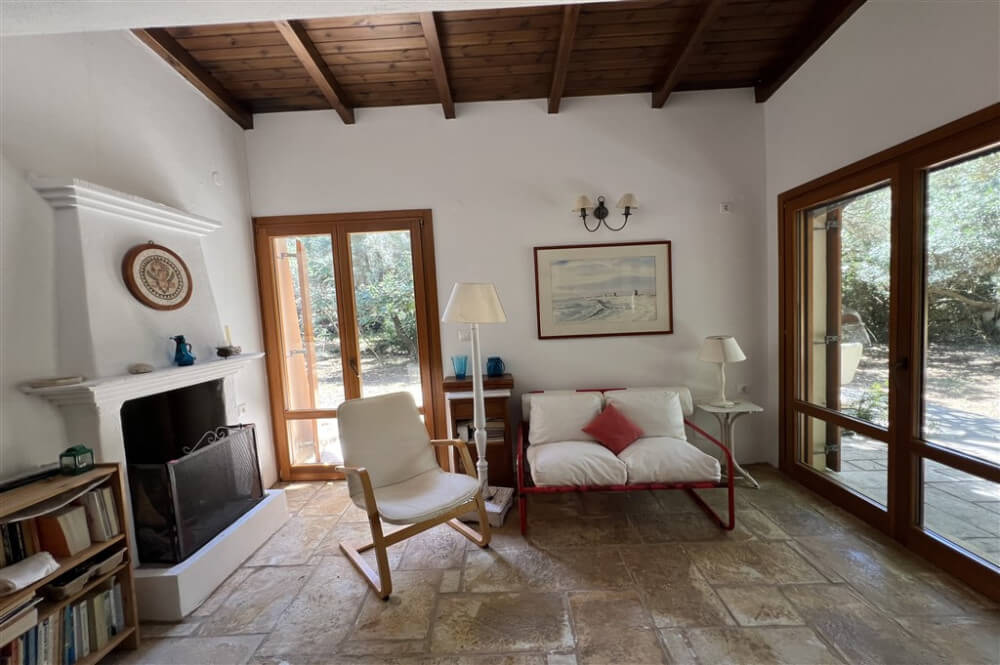 The living room is bright and spacious and includes air conditioner, fireplace, satellite TV, wireless internet and dining room for 8 people.